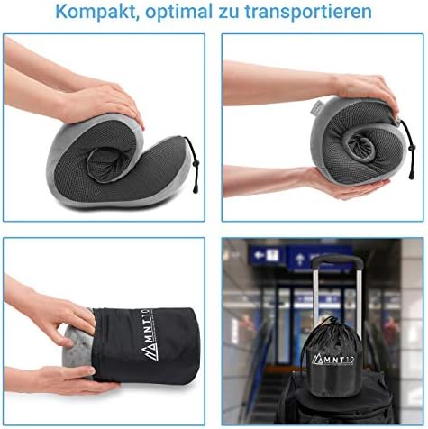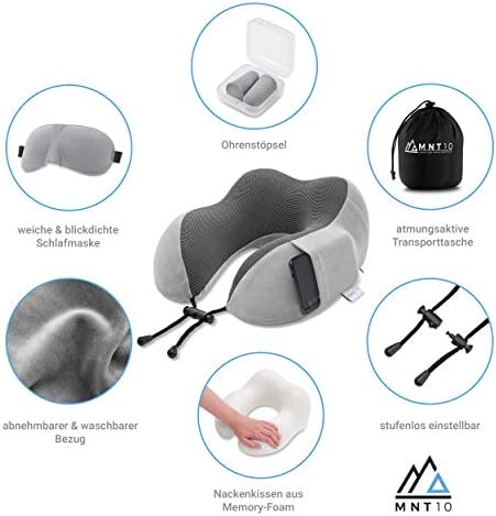 Ergonomic design, comfortable slippage – right where – the MNT10 neck pillow with its ergonomic shape ensures that your neck is optimally supported. Finally sleep relaxed – whether plane, train or a power nap in the office! There are also ear plugs and a soft, opaque sleep mask.